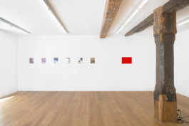 EN — The exhibition “Echo Schwein” is based on the idea of a spatial constellation. Situated between the gallery’s outdoor area and its back room, the exhibition space constitutes the center of a three-part landscape. It contains imagery. Anna Fehr works with motifs from the German satire magazine “Titanic” and Honoré Daumier's “Les Bas-Bleus” series. She presents these two series as open-ended fragments, as a provisional editorial. The drawings by Lorenzo Bernet are filled with thematic and anecdotal interrelationships. Behind deep red selenium glass panels a rigidly handcrafted rhythm of artisan templates and patterns is revealed. The pictures in the exhibition space are echoed both in the concentrated interiority of the back room – the exhibition’s metaphorical unconscious – as well as in the public street beyond the gallery walls.